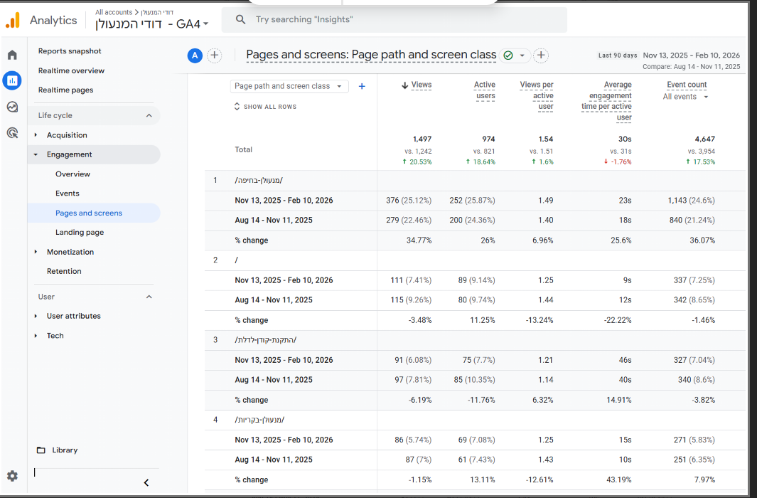 | Technical Cleanup: 404 errors were resolved, robots.txt was optimized, and site indexation was improved. | Keyword Integration: Rewrote service pages to naturally incorporate high-volume Hebrew search terms. | Authority Building: Secured high-DA backlinks from relevant security and home improvement niches. |