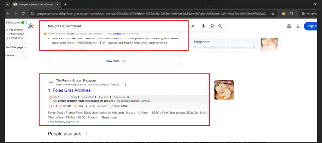 The French Grocer is among the most successful retailers of artisanal meat, cheese, and other luxury delicacies in the competitive Singapore market. The brand had faced tremendous digital challenges even with their quality products. Their online presence was often sidelined by large-scale supermarkets, and they had suffered from poor indexing of their product pages. The main issue was that they overdepended on costly paid promotion and did not have an organic presence of high-intent “buying” keywords, which reduced their scalability and organic reach over time.